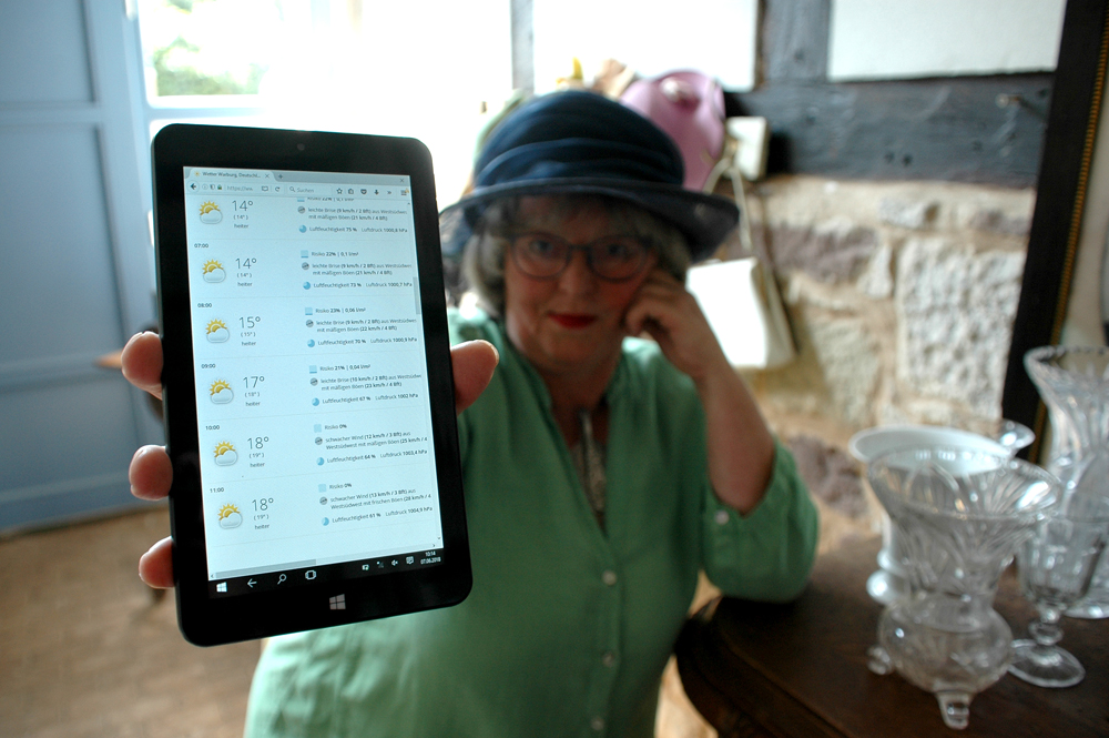 Foto: Verkehrsvereins-Vorsitzende Juttas Baumhecker freut sich über sonnige Aussichten für die Frühstücksmeile am Sonntag. Ein Hut könnte da hilfreich sein.