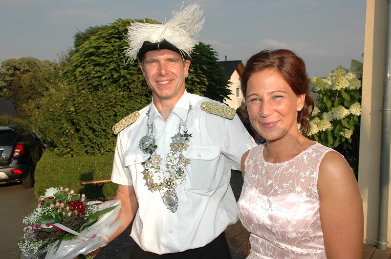 Der 45-jährige Maschinenbau-Ingenieur und Feldwebel des Vereins hatte sich vor zwei Wochen beim Königsschießen mit einer glatten Zehn den Titel gesichert. An seiner Seite steht seine Frau Stephanie Hoppe als Königin. Die 35-Jährige arbeitet als Technische Zeichnerin und ist in Schützenkreisen wohl bekannt, weil sie gemeinsam mit Hofdame Linda Köring das Modegeschäft »Braut und Fest« in Germete betreibt. Dort sind viele Königinnen und Hofdamen der Region Kundinnen. Das neue Königspaar hat zwei Kinder: Lotta (11) und Malene (7).
