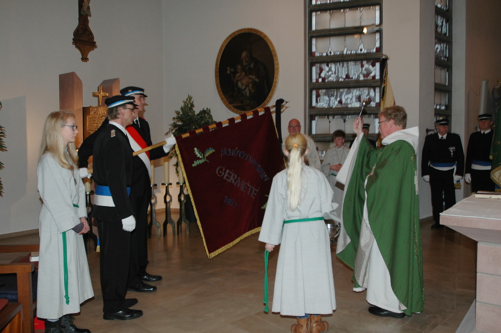 Pastor Johannes Insel hat in der Germeter Pfarrkirche St. Nikolaus die Fahne der zweiten Kompanie des Germeter Schützenvereins gesegnet.