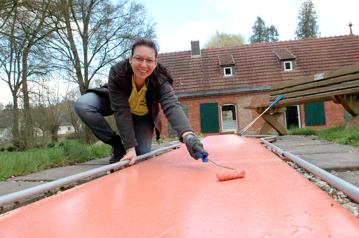 Sonja Langenströher hat sich für ihre zweite Saison einiges vorgenommen und sich gut vorbereitet. Die Minigolfbahnen und die Hindernisse hat die Germeterin mit Spezialfarbe aufgefrischt, Unkraut zwischen den Wegen gejätet und den Rasen gestutzt.