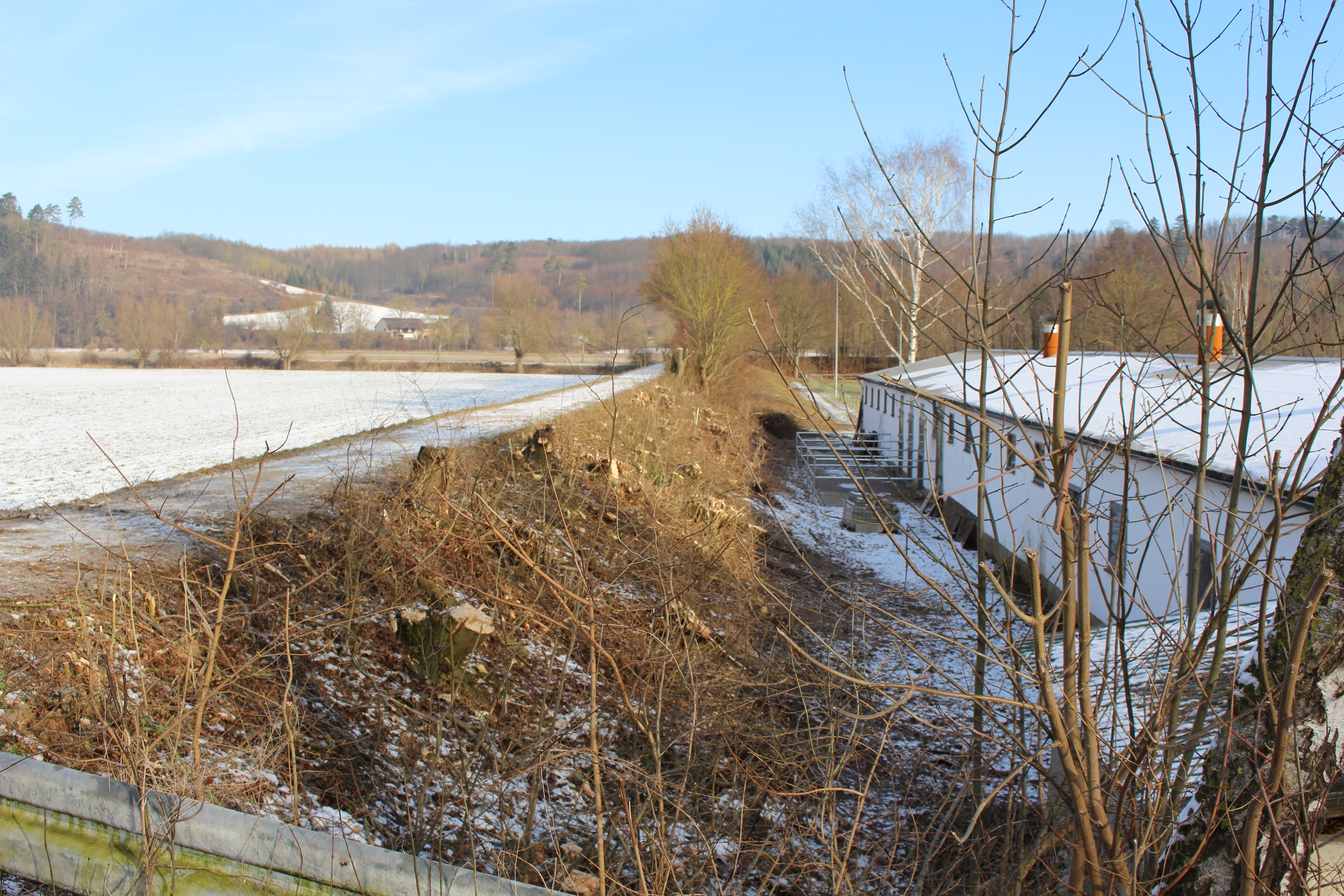 Der gerodete Abschnitt des Hochwasserschutzdamms hinter der Reithalle Germete.