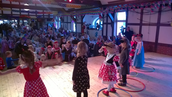 Die Bewirtung hatten erneut die Vorstandsmitglieder und Offiziere des Schützenvereins übernommen. Die meisten Programmpunkte steuerten die Kindergruppen der Ersten Turn- und Sportgemeinschaft (ETSG) bei. Der von Sitzungspräsident Jürgen Vahle angeführte Elferrat bestand traditionell aus den Kommunionkindern dieses Jahres sowie deren gleichaltrigen evangelischen Mitschülern. Die freien Plätze hatte „Programmdirektorin“ Sabrina Vonde per Los an interessierte Kinder vergeben.