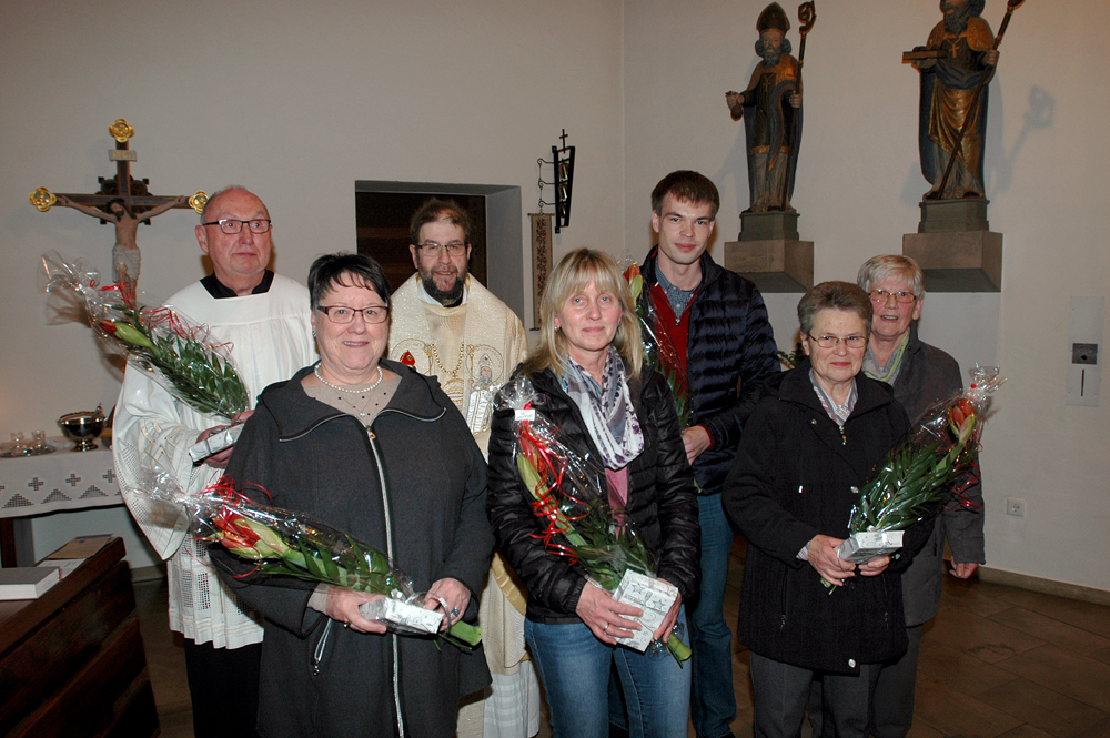 Beim Patronatsfest am vergangenen Samstag in der St.-Nikolaus-Kirche bedankte sich der Kirchenvorstand noch einmal bei den ausscheidenden Mitgliedern mit einem Blumenstrauß und einem kleinen Präsent für die geleistete Arbeit. Verabschiedet wurden Brigitte Stute, Jan Tillmann und Schwester Anastasia (alle acht Jahre Mitglied) Katja Schweins (in Abwesenheit, zwölf Jahre Mitglied) sowie Theo Wülfinghoff (Küster) und Elfriede Fuest (als Delegierte des Kirchenvorstandes).
