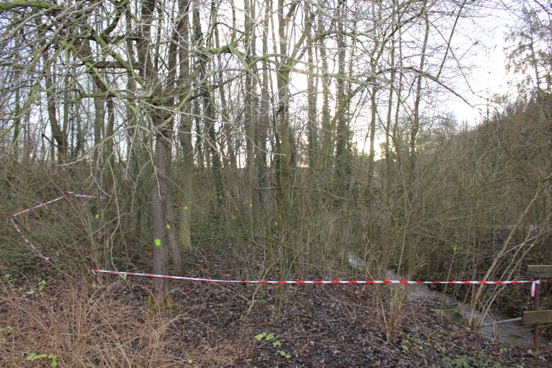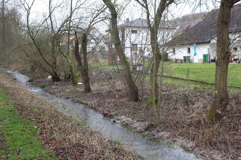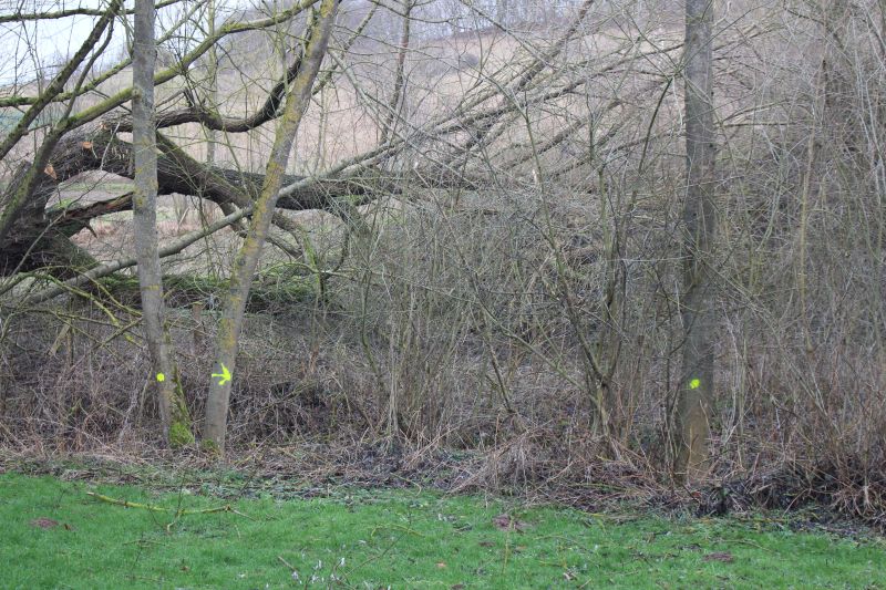 Von hier bachabwärts werden die bereits markierten Bäume gefällt.